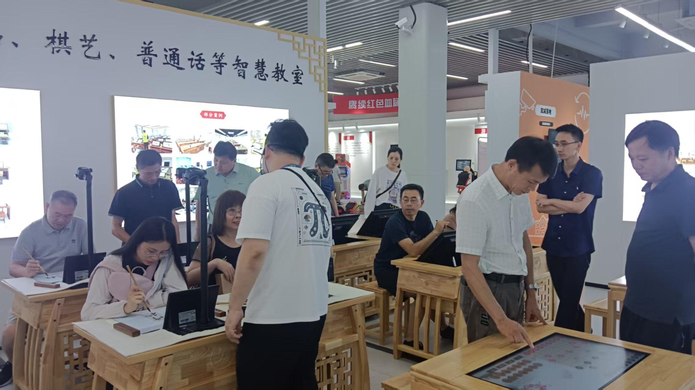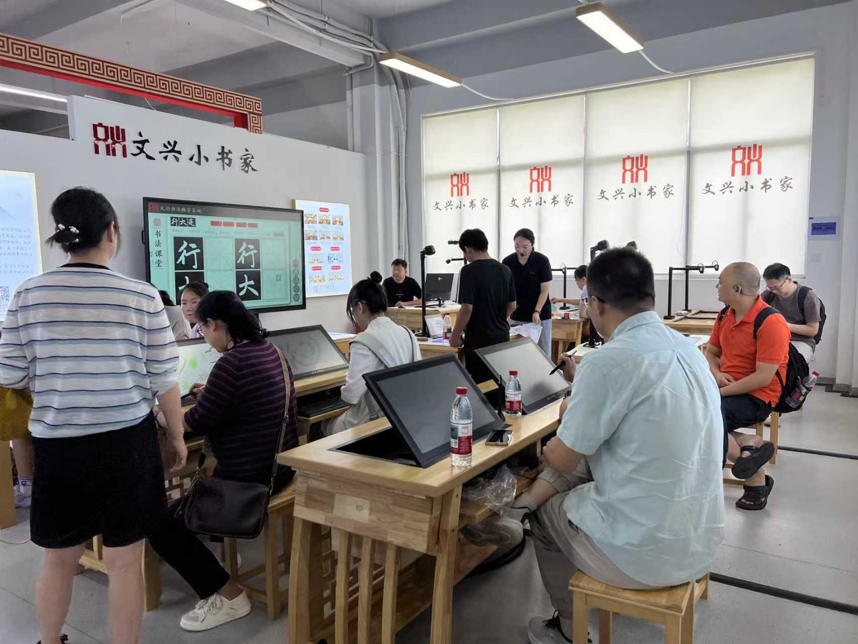 2025年7月27日,浙江省麗水市云和縣教育管理青年干部研修班一行蒞臨文興小書家智慧教育體驗中心,圍繞“智慧書法、數字美術、創(chuàng)新棋藝、互動沙畫”四大主題展開深度研學。沉浸式體驗了書法、美術、棋藝和沙畫等一系列前沿教育產品,親身感受教育與科技融合帶來的無限魅力。