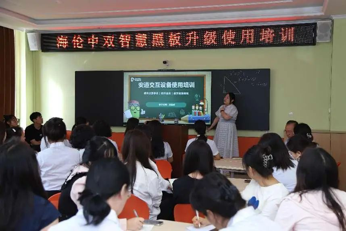 為配合中澤學校新學期籌備工作,讓老師們更快了解并熟悉使用智慧黑板,安道教育到海倫市中澤學校開展了安道教育智慧黑板使用培訓會,圍繞教學場景中常見的問題,對學校老師們進行全方面系統化的使用培訓。