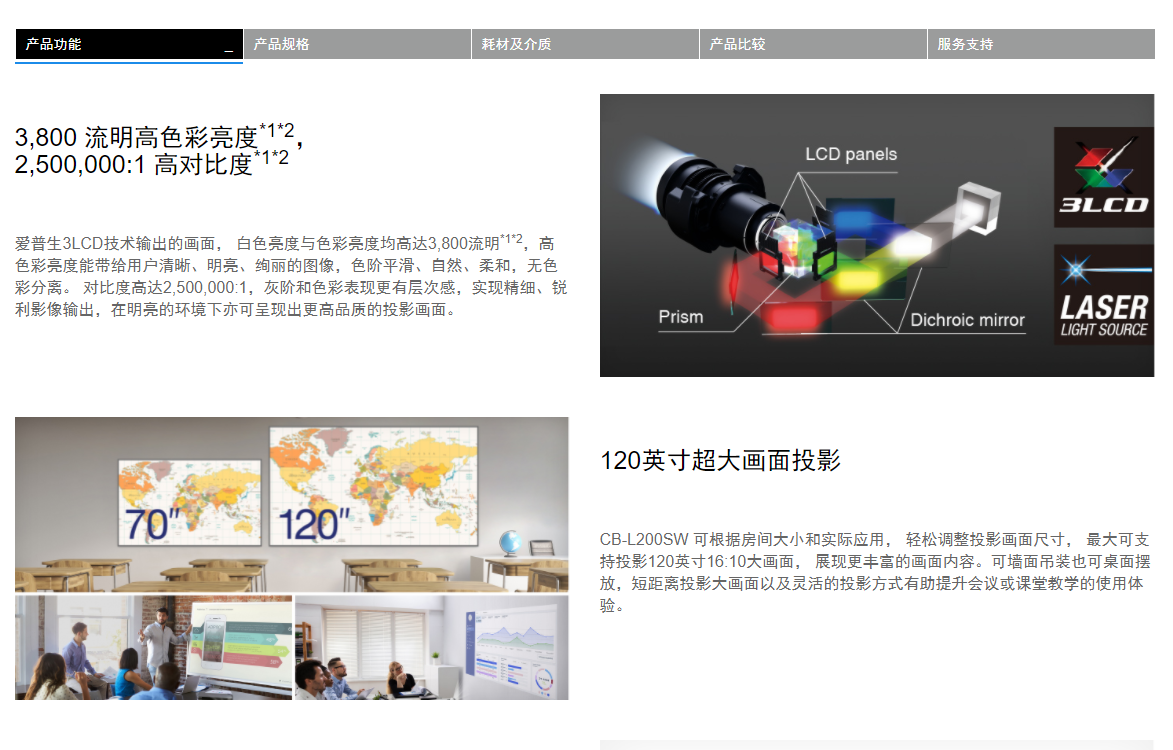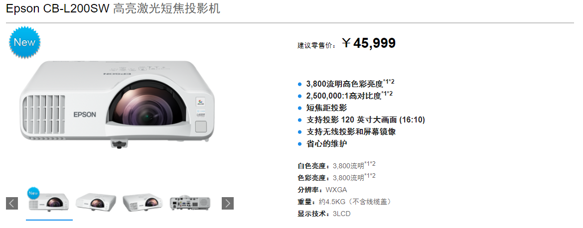 愛普生CB-L200SW 高亮激光短焦投影機