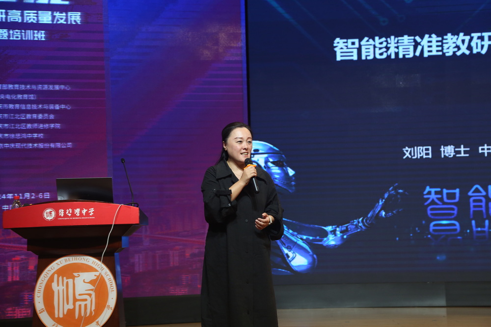 劉陽做“智能精準教研在國家中小學智慧教育平臺上的創(chuàng)新應用模式”講座,深入探討如何高效協(xié)同應用中央電化教育館智能研修平臺與國家中小學智慧教育平臺,通過融合先進的智能技術(shù)與AI數(shù)據(jù)實證分析,推動教研工作的數(shù)字化轉(zhuǎn)型、智能化升級和精準化發(fā)展,顯著提升教研效率和成效。