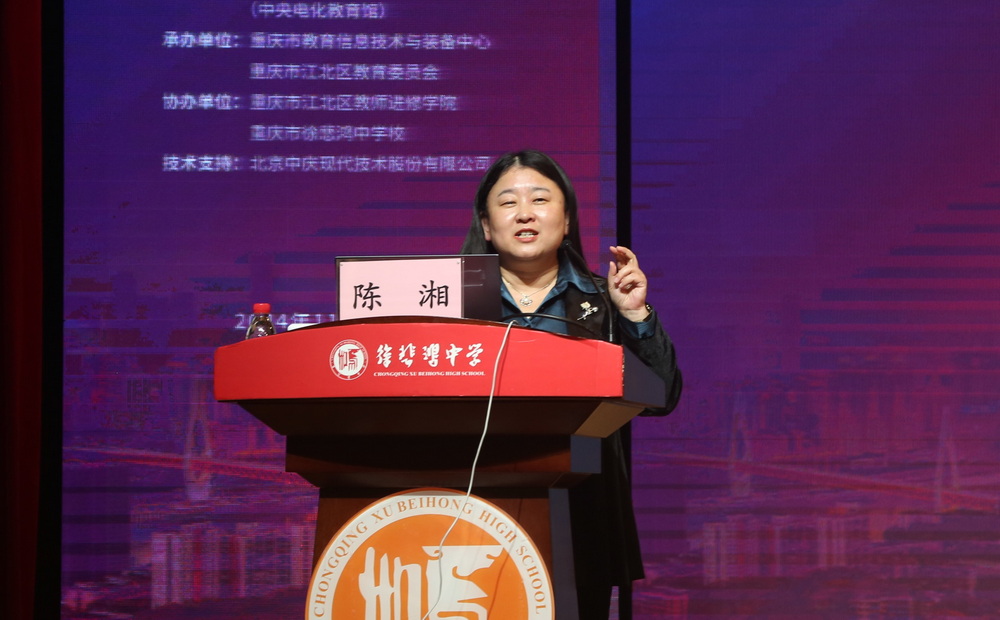 江北區(qū)在重慶市江北區(qū)智能教育應用創(chuàng)新展示中,邱凜、曾維義、陳容先后分享了江北區(qū)教育及教研數(shù)字化轉(zhuǎn)型,以及徐悲鴻中學創(chuàng)美課堂與人工智能創(chuàng)新應用探索的成功經(jīng)驗。