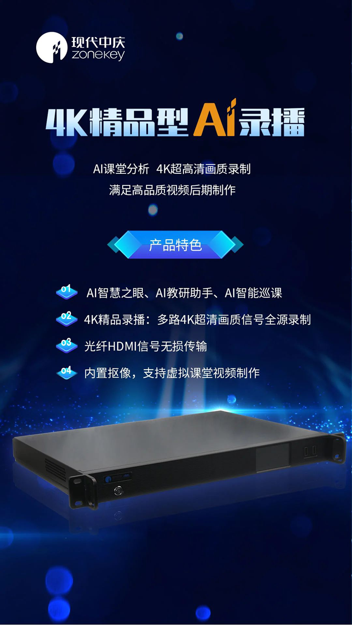 2025年,為了進一步推動讓AI走進每間教室,滿足不同類型教室的建設(shè)需要,現(xiàn)代中慶推出十余款A(yù)I智能錄播產(chǎn)品,構(gòu)建起多元化的產(chǎn)品矩陣:面對教室新建或升級改造,推出精品型、常態(tài)型、普及型等系列產(chǎn)品;面對原有不具備AI功能的錄播教室則推出AI升級型產(chǎn)品。全面滿足不同學(xué)校、不同應(yīng)用細分的AI教室建設(shè)需求。