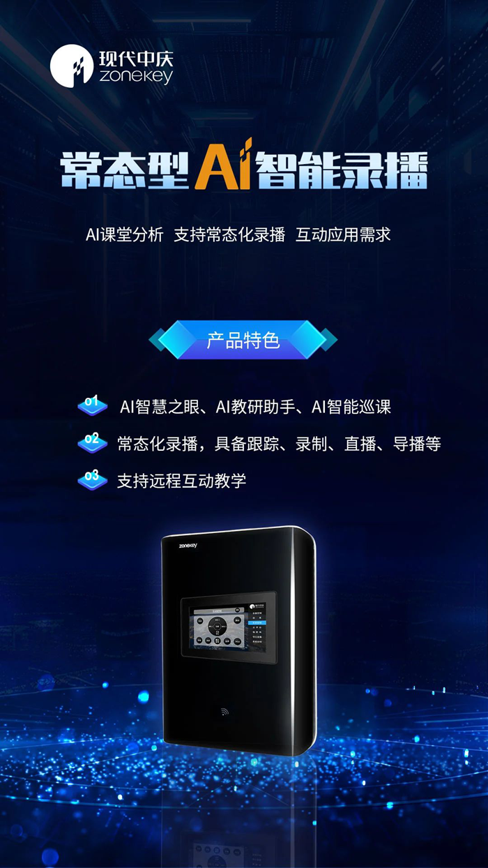 現(xiàn)代中慶AI智能錄播作為一臺教室終端,具備三大AI功能: