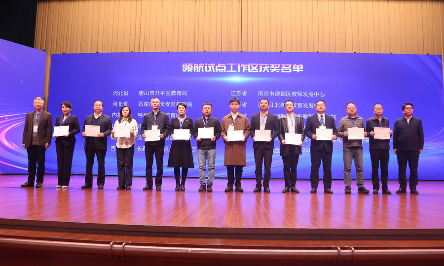 教育部教育技術與資源發展中心(中央電化教育館)為智能研修平臺領航試點工作區、領航試點工作校、創新應用教研團隊、卓越教研員、卓越教師頒發證書。