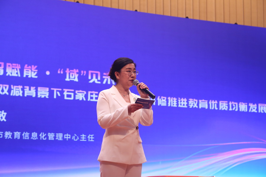 石家莊市教育信息化管理中心主任趙慧敏的報告《數智賦能·“域”見未來——雙減背景下石家莊市以智能研修推進教育優質均衡發展實踐探索》中,介紹了石家莊市在雙減政策下,如何通過智能研修實現教育優質均衡發展的全鏈條推進機制,以及“1(網)+2(平臺)+3(維度)+N(應用)”的獨特模式。趙主任還分享了長安區作為試點,如何通過“三階六步兩跟進”的教研模式,結合智能教育聯盟和智慧教育工作室,促進城鄉教育均衡發展的成功案例。