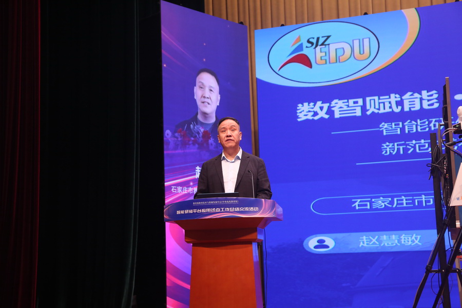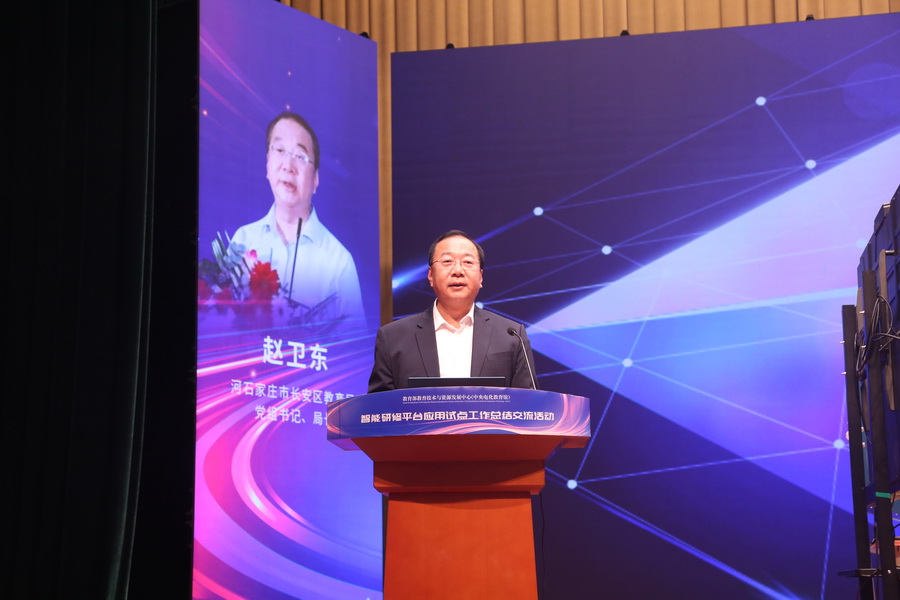 石家莊市長安區教育局黨組書記、局長趙衛東的報告《數字賦能創新態,科技領航啟新程》中,闡述了長安區作為智能研修平臺應用試點工作領航區的戰略地位,以及如何通過數字化轉型推動教育高質量發展,打造了“長安樣本”。