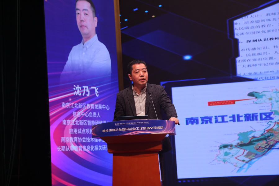 南京江北新區教育發展中心信息中心負責人沈乃飛的報告《智馭未來教育、賦能教師成長的南京江北行動》分享了江北新區在智能研修平臺應用試點工作中的創新模式、科研引導、培訓先行和技術探索等方面的經驗,并對未來的試點方向進行了明確。
