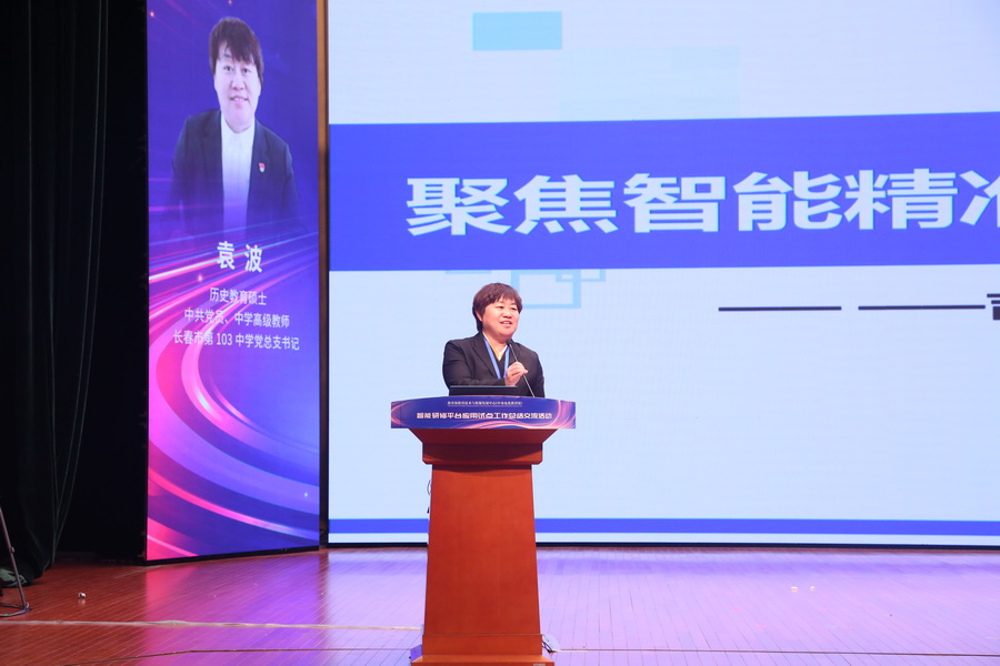 長春市第103中學黨總支書記袁波的報告《聚焦智能精準教研,賦能教師專業成長》講述了長春市第103中學如何依托央館智能研修平臺,探索構建“學創課堂”、探索“研修機制”和探索“輻射引領”新路徑,推動教師專業成長和教育數字化變革。
