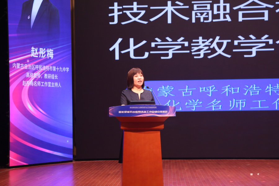 內蒙古自治區呼和浩特市第十九中學教研組長趙彤梅的報告《技術融合視域下的化學教學創新探索》介紹了呼和浩特市第十九中學如何利用智能研修平臺,構建“數據+實驗+生態”融合模式,實現化學教學的創新探索。