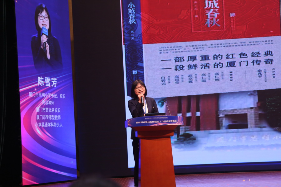 廈門市思明小學書記、校長陳雪芳的報告《共學·共研·共創:基于“三核 +”循證的智能化研修創新模式》闡述了思明小學如何利用央館智能研修平臺,推動數據驅動的精準教研,構建教師研修共生體,并通過“三共”策略提升校本研修質量。