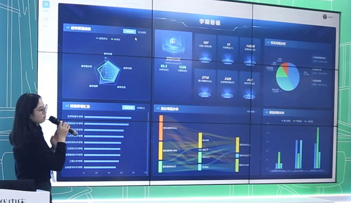 現(xiàn)代中慶通過場景化互動、現(xiàn)場體驗和數(shù)據(jù)可視化看板,生動展現(xiàn)智能時代AI在實現(xiàn)教學質(zhì)量管理科學化,促進教學質(zhì)量精準躍升的巨大價值。