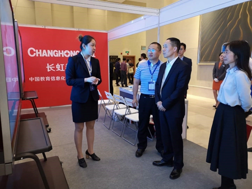 此次活動現場設立了500㎡的展覽展示區,集中展出省內20余家教育信息化骨干企業出的數字化校園、智慧教育、教育教學資源等方面的優秀產品和解決方案。長虹教育在現場展出了教育信息化2.0
