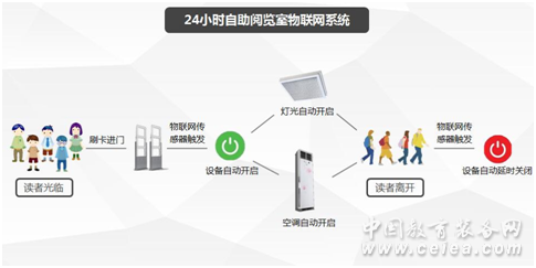 印天24小時(shí)自助閱覽室系統(tǒng)由自助借還、自助辦證、智能導(dǎo)航、智能書架、電子閱讀機(jī)、門禁聯(lián)動(dòng)、安全門與監(jiān)控以及閱覽室管理軟件共同組成終端服務(wù)系統(tǒng),彌補(bǔ)了傳統(tǒng)圖書館服務(wù)時(shí)間和空間限制。