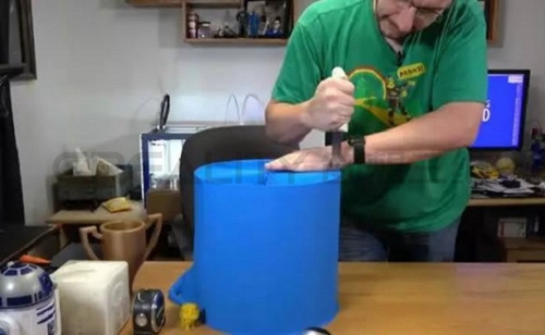 下面是打印完成的3D模型,從外面看起來確實像個塑料桶,但是外面那層殼最后是要切掉的。