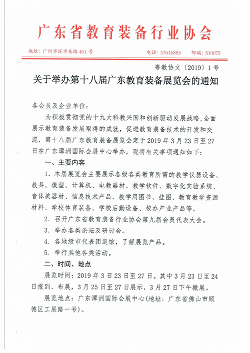 關(guān)于舉辦第十八屆廣東教育裝備展覽會的通知