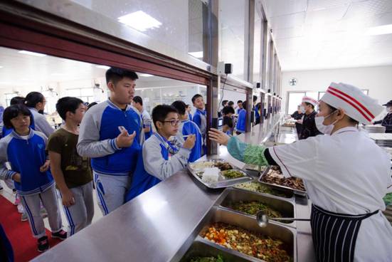 “從源頭上抓,依制度來管”,師大思沁中學還依托師大附中集團的管理模式及標準,制定了本校的《用餐陪餐制度》,明確規定老師陪同用餐,保障學生就餐的安全、營養。