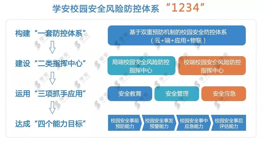 學安—“AI+”校園安全風險防控體系應用云計算、大數據、物聯網和人工智能等先進技術,融人防、物防、技防于一體,通過校園安全云平臺和校端安全生態鏈產品建立起局校可視化聯動、共享的校園安全風險防控生態,鑄就“全域、全時、全程、全員”的360度安全防護體系,讓校園更陽光。