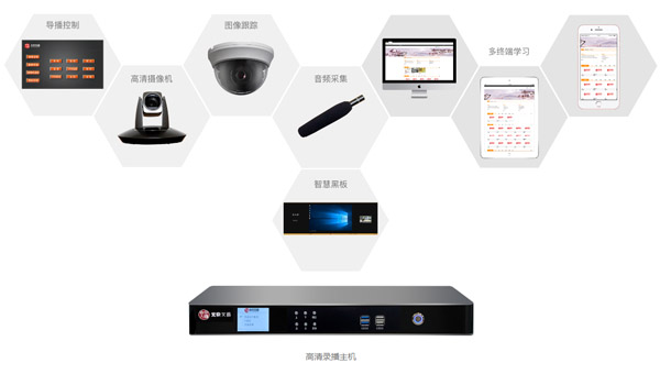 本方案由智慧黑板、互動錄播主機、高清攝像機、專業音頻設備、資源平臺等產品組成。