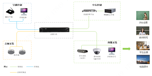系統可以實現錄播功能,在主機關機的情況下還應兼具電子巡考、校長巡課、網絡教研、多媒體教室安防等功能。