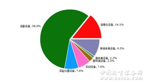 9月份教育裝備行業招標采購信息分類占比情況如圖1所示:后勤設備招標采購信息共計2551條,占58.03%;信息化設備招標采購信息共計621條,占14.13%;實驗儀器設備招標采購信息共計332條,占7.55%;實訓設備招標采購信息共計307條,占6.98%;圖書館設備招標采購信息共計110條,占2.50%;音體美設備招標采購信息共計57條,占1.30%;其他專用設備招標采購信息共計418條,占9.51%。