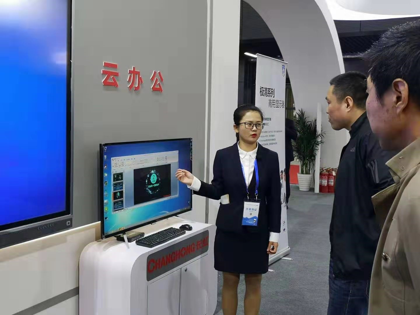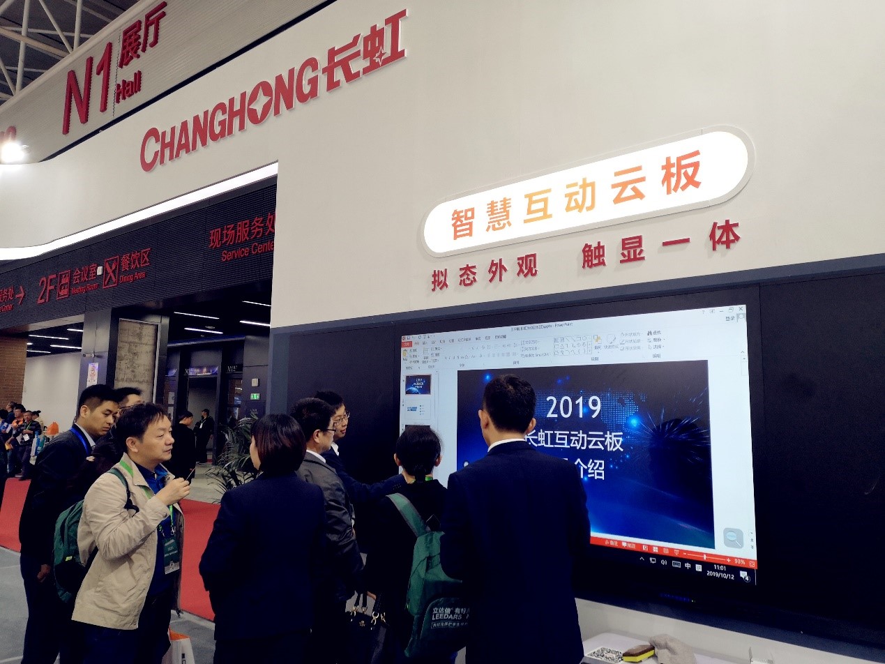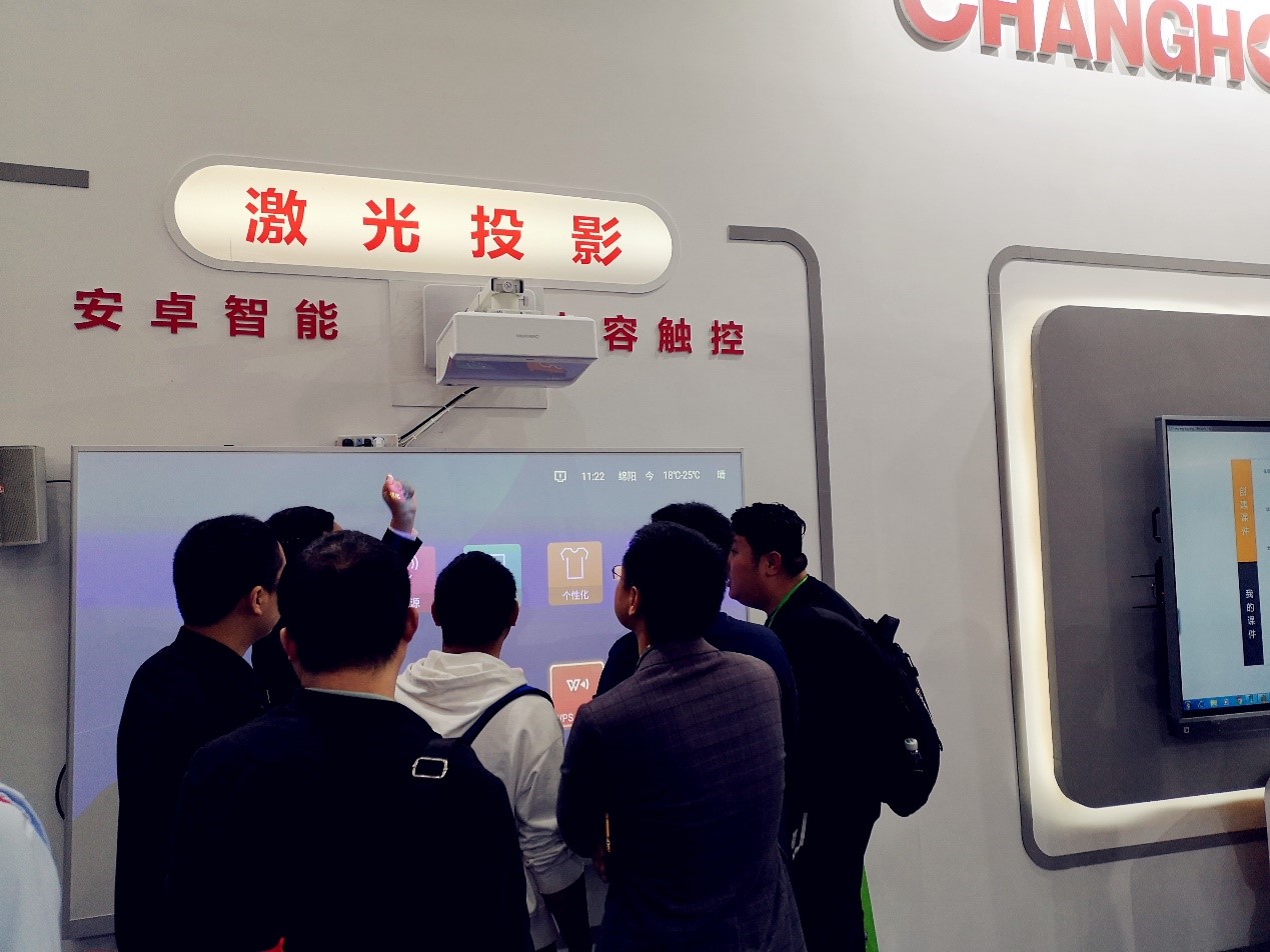 長虹還展出了全新的智能教學觸摸一體機,智慧班牌、全貼合智能互動云板等新產品。長虹全新推出的智能教學觸摸一體機突破技術壁壘,迭代升級了產品的智能護眼功能,提升了色域度,全面的去藍光,有效的從源頭減少對視力危害,更好的為師生提供教學環境。