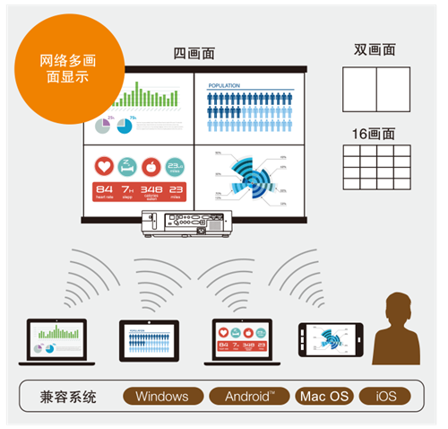 此外,CE5500HL在操作上的智能化和便捷性也讓河西學院師生稱贊不已。CE5500HL系列投影機擁有NEC最新的網絡多畫面顯示功能,支持多達16 個畫面的同時顯示,這對于大學課堂內容的多畫面同步分享和對比演示場景非常適用。通過MultiPresenter軟件的無線投屏功能,讓影像呈現方便快捷。垂直和水平梯形校正功能,讓CE5500HL能夠輕松應對多種復雜的安裝環境。