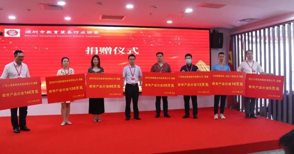 最后,大會在充滿正能量的“助教扶智”捐贈儀式中進入了尾聲,深圳市教育裝備行業協會的愛心會員企業向渠縣人民政府捐贈了價值388萬元的教育裝備產品。