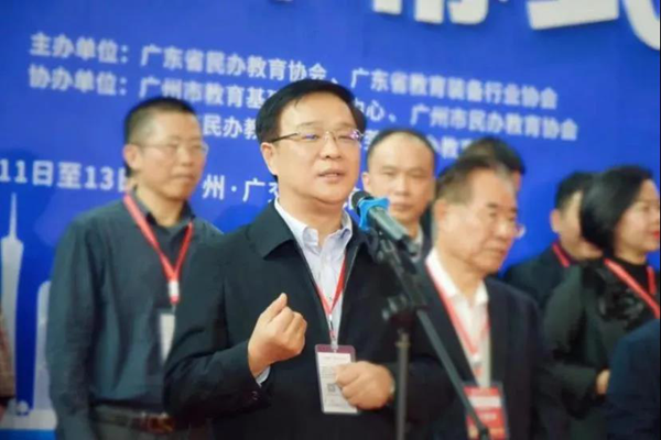 全國人大常委會原副秘書長、法律委員會原副主任委員、教育部原部長助理、基礎教育司司長李連寧,教育部教育裝備研究與發展中心首席研究員、學術委員會主任委員、科研處處長劉強,中國教育裝備行業協會副會長兼秘書長夏國明,廣東省教育廳主任督學李璧亮等領導和嘉賓出席開幕式。廣東省民辦教育協會會長趙康主持開幕式。