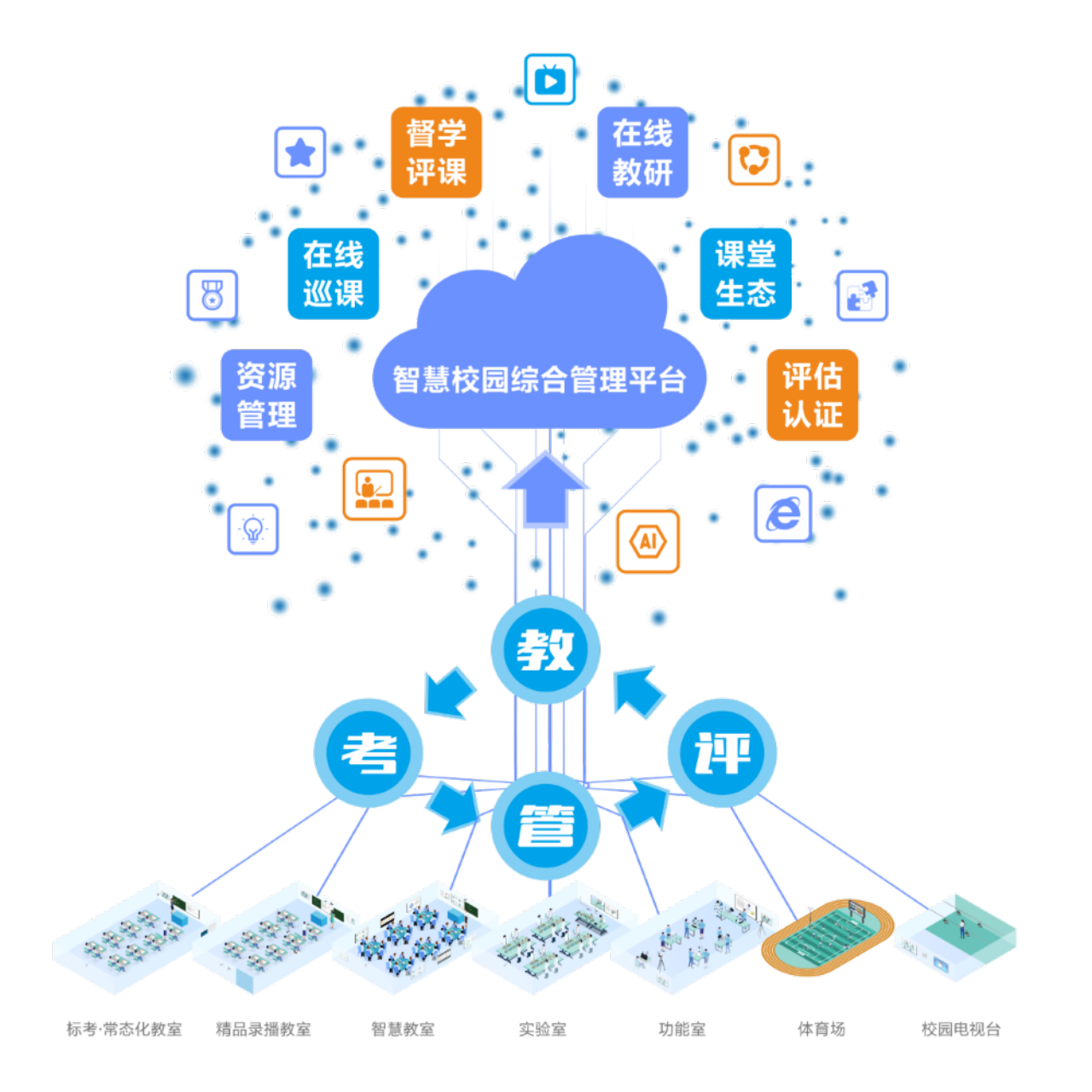 教學資源、匯聚共享。通過智慧校園綜合管理平臺,實現教學資源的統籌管理、互動調度、督學評課等應用。有效連接學校實體教學空間,為全體師生構建全場景教學和泛在學習的支撐環境。進一步幫助學校解決課程開不齊、開不足、開不好課的現狀,讓優質教育資源惠及更多的師生,助力推動國家教育優質均衡發展。