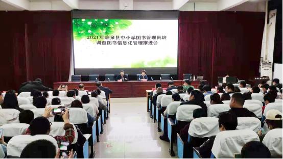 為進一步提升全縣中小學圖書管理和應用水平,實現圖書信息化、網絡化管理,4月10日,臨泉縣教育局召開2021年全縣中小學圖書管理員培訓暨圖書信息化管理推進會。會議由儀器站負責人劉彪主持。全縣中心學校、縣直學校業務副校長、電教辦主任及各中小學圖書管理員400余人參加培訓會。