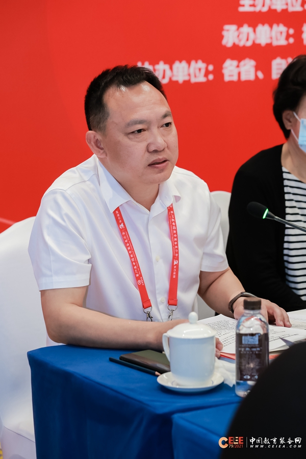 中國教育裝備行業協會常務副會長李興植在最后的講話中介紹了第79屆展示會的相關亮點,也對行業協會2021年的主要工作情況做了簡單通報,并表示中國教育裝備行業協會的工作就是圍繞中心,服務大局,如何把教育裝備用好,真正讓它在教育教學當中發揮它應有的作用,是一項十分艱巨且重要的工作,需要全行業共同探討。