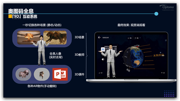自控力是非常難的,從某一個角度說,是因為傳統學習遠比娛樂枯燥的多,那有沒有辦法打破傳統學習環境,奧圖碼數碼科技致力于智慧教育驅動教改新發展,在學習的形式上賦能科技,讓學習像娛樂一樣,生動的,可視化的,有互動性的。傳統的教室學習環境也隨之發展改變,MR 9D教室是奧圖碼智慧教育來我們帶來的全新解決方案。
