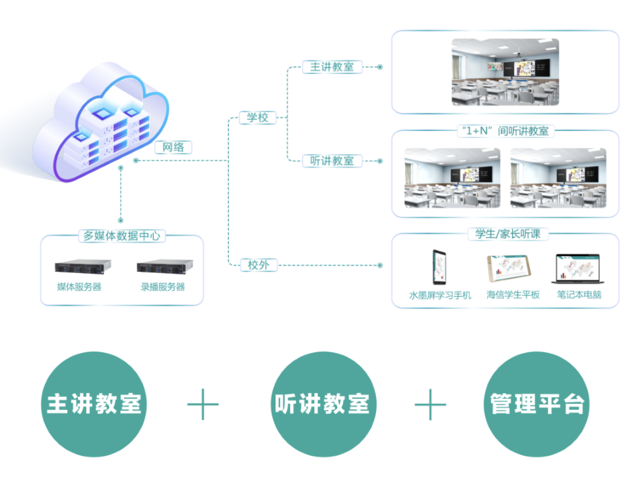 為響應(yīng)國(guó)家政策,推動(dòng)實(shí)現(xiàn)教育優(yōu)質(zhì)均衡發(fā)展,海信推出了 “三個(gè)課堂+”系統(tǒng)解決方案,打破傳統(tǒng)“1托3”限制,建立多間“1托N”教學(xué)子系統(tǒng),區(qū)域間可實(shí)現(xiàn)千間教室同時(shí)在線(xiàn)互動(dòng)學(xué)習(xí)。該方案不僅可滿(mǎn)足專(zhuān)遞課堂,名師課堂、名校網(wǎng)絡(luò)課堂的“三個(gè)課堂”的場(chǎng)景應(yīng)用,同時(shí)也可滿(mǎn)足教研會(huì)議、空中課堂、課后輔導(dǎo)、“4點(diǎn)半工程”、巡課督導(dǎo)等應(yīng)用需求。還創(chuàng)新性的提供了“遠(yuǎn)程講評(píng)”“答題互動(dòng)”等功能,搭配協(xié)作白板、隨機(jī)挑班、搶答等互動(dòng)工具,打造趣味性課堂互動(dòng)模式,讓主講老師充分關(guān)注到聽(tīng)講班級(jí)的每位學(xué)生,即使相隔千里,猶如置身同一課堂。