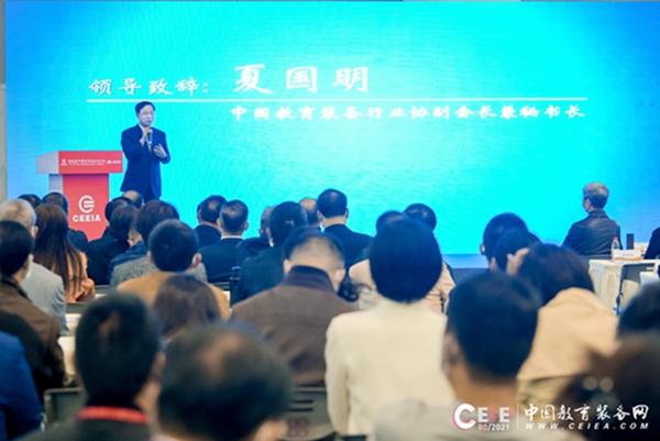 中國教育裝備行業(yè)協(xié)會副會長兼秘書長夏國明致辭
