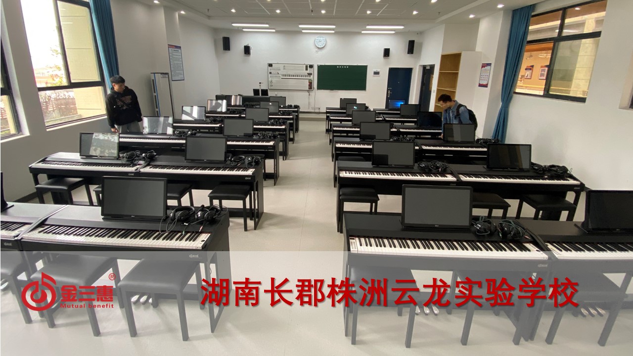 金三惠依據客戶需求,提供了數字音樂創客教室24+1方案配備了金三惠智慧音樂創客教學系統、智慧電鋼琴、教學儀等整套設施。