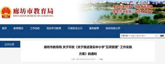 今年6月下旬,廊坊市教育局公布印發《關于推進落實中小學“五項管理” 工作實施方案》的通知(以下簡稱“方案”),方案中明確了中小學要優化校園閱讀環境,推動書香校園建設,加強圖書室、圖書館建設,提高圖書室、圖書館使用率的主要任務。