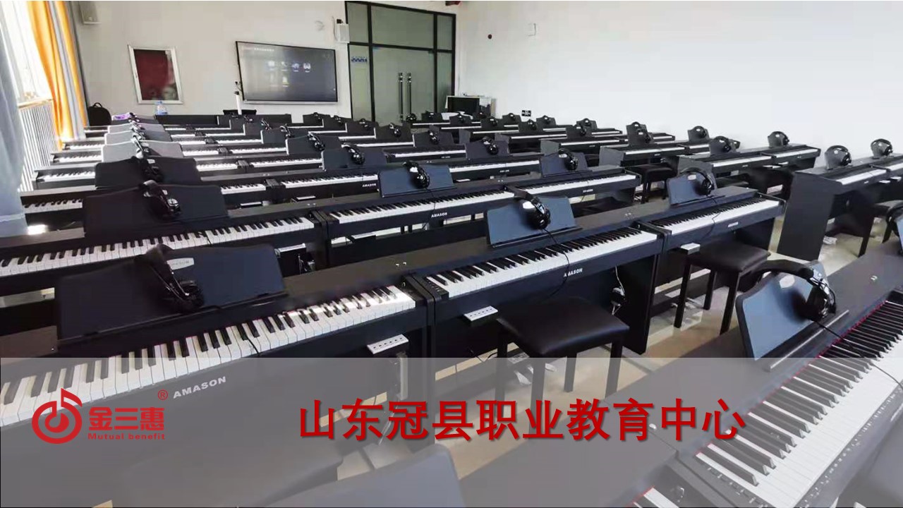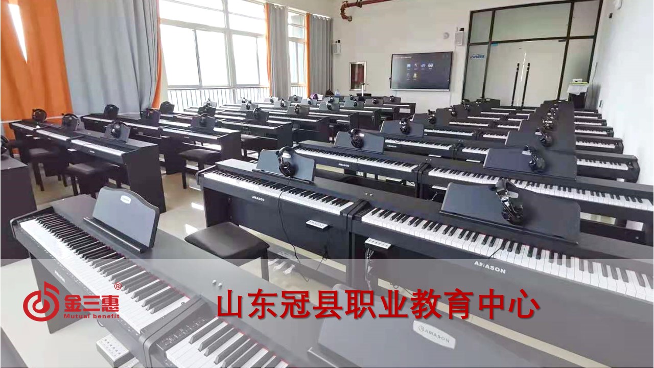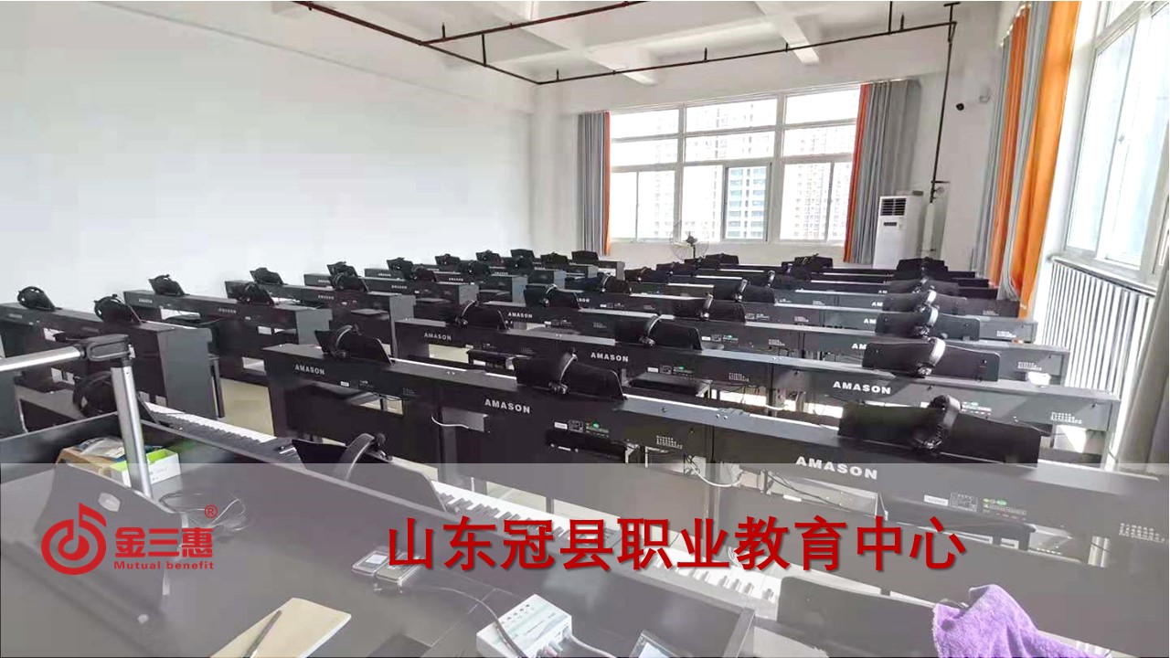 山東冠縣職業教育中心的電鋼琴教室正式開始使用,本校數字化音樂教室由北京金三惠科技有限公司負責提供、安裝、培訓。