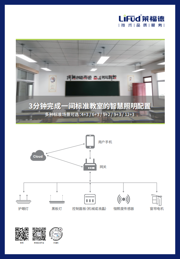 智慧除教室,萊福德還擁有教室照明十年質(zhì)保系列、IP40防護系列及高效節(jié)能系列等多種常規(guī)教室解決方案,助力客戶完成不同項目要求競標。