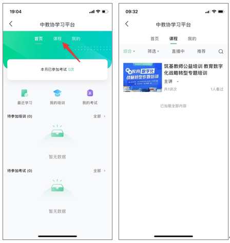在首頁點擊【我-我的培訓-課程】,即可學習《“筑基教師公益培訓”教育數字化戰略轉型專題培訓》課程。