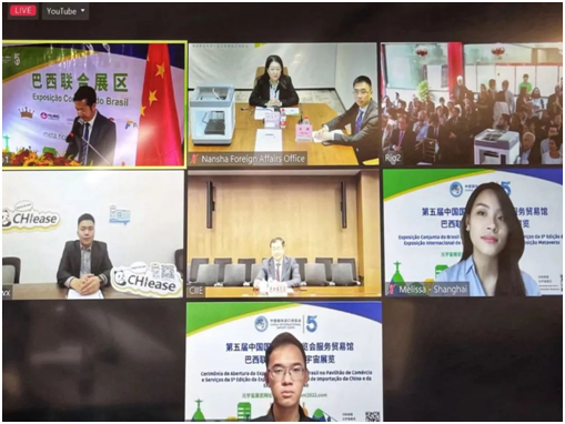進博會巴西聯合展區暨元宇宙展覽開幕式由中國駐里約熱內盧總領館舉辦,中國駐里約副總領事陳永燦、卡希亞斯公爵市市長威爾遜·米格爾、廣州市南沙區區長吳揚、中巴企業家委員會巴方主席內維斯、中國國際進口博覽局招展處負責人莊嚴、創想三維巴西國家經理肖劍雄,以及其他中巴政府部門、商協會、企業及華僑華人代表等200多人在里約、上海、廣州三地以線上線下融合方式共同出席本次活動。
