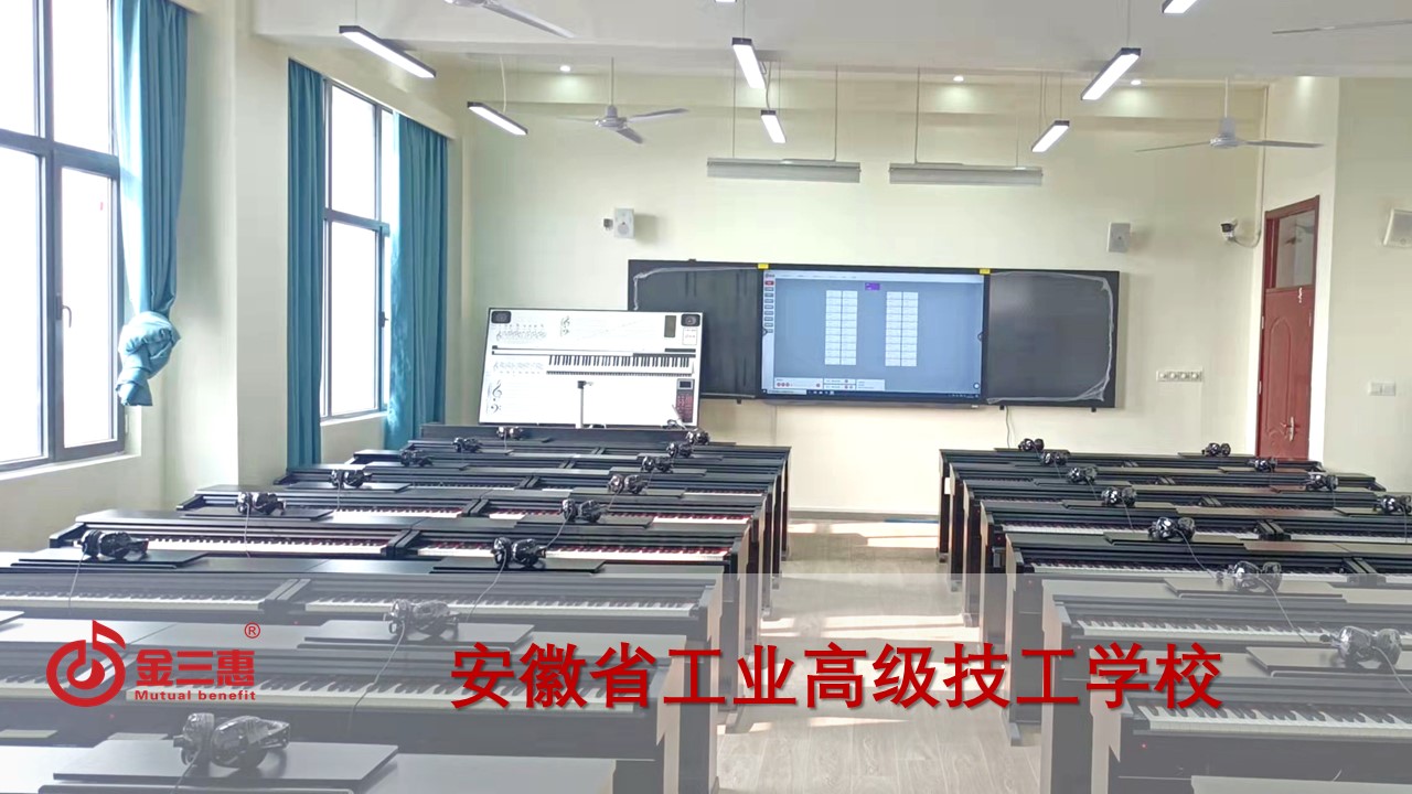 安徽省工業高級技工學校的數字音樂電鋼琴教室開始使用,由北京金三惠科技有限公司負責提供、安裝、培訓。