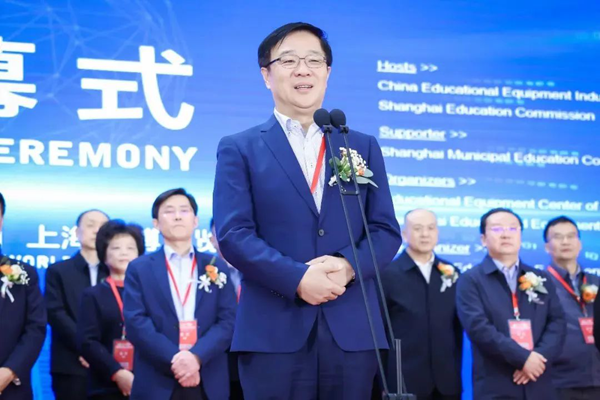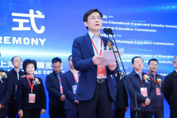 (教育部關心下一代工作委員會常務副主任、中國教育裝備行業協會專家委員會主任王富宣布2023中國國際教育裝備(上海)博覽會開幕)