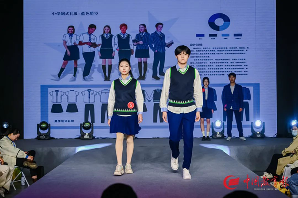 活動以“衣以載道、以美育人”為主題,現場展示包含中小學運動裝、中小學制服裝、教師職業裝五個類別共計300個系列作品。