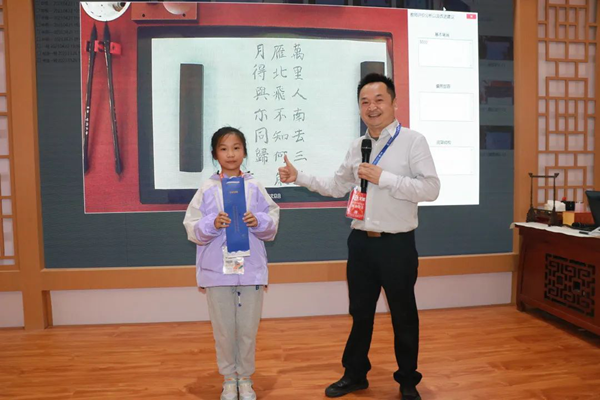展會前夕,在江西省教育技術與裝備發展中心、江西省教育廳教學教材研究室、中國教育裝備行業協會未來教育裝備分會主辦的“教育新技術與課堂應用融合實踐成果交流”活動中,華文眾合作為書法教育裝備領軍品牌,走進南昌市紅谷灘區騰龍學校,展示智慧書法教育裝備前沿科技,并向南昌市紅谷灘區騰龍學校捐贈價值二十余萬元的智慧書法教學軟件系統,助力學校書法教學現代化發展。