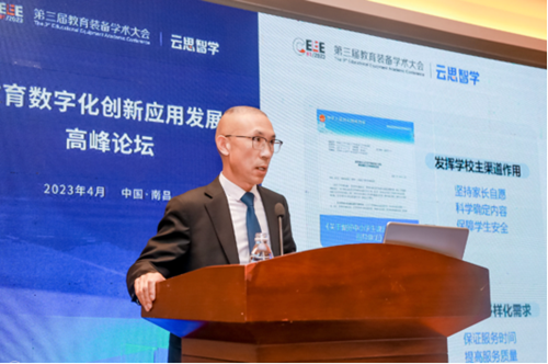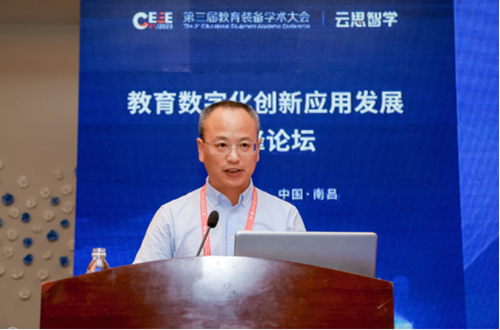 教育部關心下一代工作委員會常務副主任、中國教育裝備行業協會專家委員會主任委員王富,中國教育科學研究院黨委書記、院長,全國教育科學規劃領導小組辦公室主任李永智,江西省教育評估監測研究院黨委書記劉靜儉,江西省教育技術與裝備發展中心主任熊春光,河南省教育資源保障中心主任王德如,江西省教育評估監測研究院副院長唐旭,華東師范大學上海數字化教育裝備工程技術研究中心主任顧小清,北京云思智學科技有限公司董事長陳恭明、CEO劉渝等領導和嘉賓500余人出席本次大會。論壇線上點擊量超10萬人次。會議由中國教育裝備行業協會教育裝備研究院院長李興植主持。