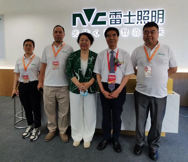 同時,中國教育裝備行業協會會長王富(圖右二)來到雷士照明展廳現場,全面了解并深入體驗了雷士照明教育產品,對其大加贊賞。