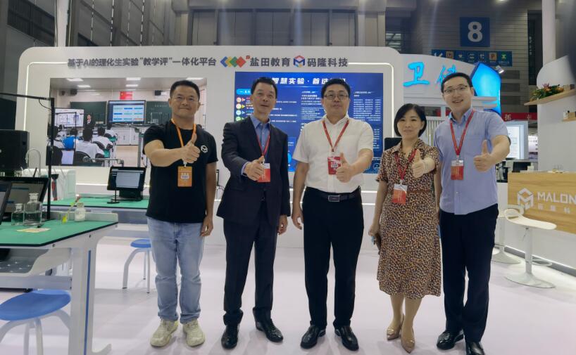 【深圳市教育局黨組成員、副局長(zhǎng)趙立(右三)蒞臨碼隆展位參觀指導(dǎo)】