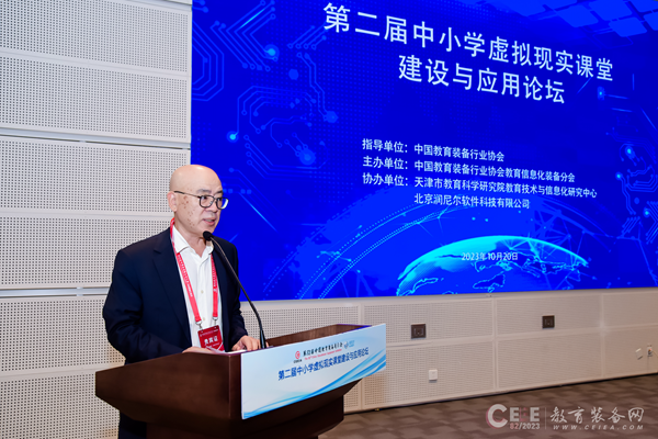 10月20日至22日,第82屆中國教育裝備展示會在天津舉辦。作為本屆展示會期間的重要組成部分,10月20日下午,由中國教育裝備行業協會指導,中國教育裝備行業協會教育信息化裝備分會主辦,天津市教育科學研究院教育技術與信息化研究中心、北京潤尼爾軟件科技有限公司協辦的“第二屆中小學虛擬現實課堂建設與應用論壇”在國家會展中心(天津)會議區舉行。