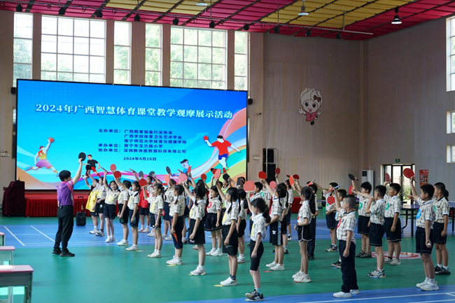 由廣西教育裝備行業(yè)協(xié)會、廣西學(xué)校體育衛(wèi)生藝術(shù)學(xué)會、南寧師范大學(xué)體育與健康學(xué)院主辦,玉蘭路小學(xué)承辦,深圳教體醫(yī)科技公司協(xié)辦的2024年廣西智慧體育課堂教學(xué)觀摩展示活動于4月16日南寧市玉蘭路小學(xué)成功舉行。此次活動有來自全區(qū)各地中小學(xué)校長和體育教師共300余人現(xiàn)場參會,這不僅是一場體育教學(xué)的盛宴,更是一次數(shù)字化轉(zhuǎn)型教育在新時代體育領(lǐng)域的生動實踐。讓我們來看看本次活動的報道。