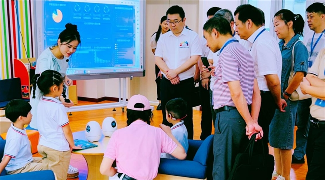 無錫對AI學前教育的探索不止于此。5月,在學前教育團隊的服務和引導下,無錫還與幾百里外的蕪湖灣沚雙向奔赴,用AI同譜“育兒歌”。雙方齊聚在無錫經(jīng)濟技術開發(fā)區(qū)觀山實驗幼兒園和天鵝湖實驗幼兒園,觀摩園所特色戶外游戲活動,圍繞教育創(chuàng)新、教育科技應用和教學方法等多方面展開交流。其中,淘云科技學前教育解決方案在園所的創(chuàng)新實踐得到了雙方的一致肯定。
